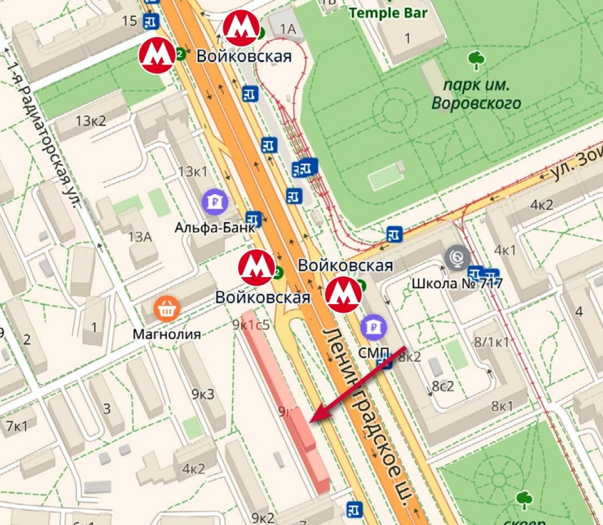 Первая линия шоссе по направлению в центр и отличная видимость с дороги формируют автомобильный трафик. Бесплатная городская парковка в пешей доступности от помещения (в 1-ом и 2-ом Войковском пр. и во дворе дома).